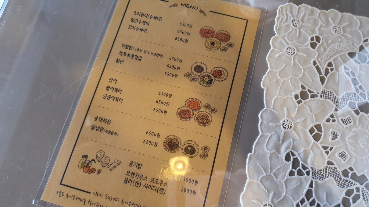 초이 수제비의 메뉴판에는