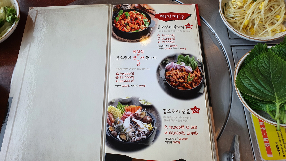 메인 메뉴인 갑오징어가