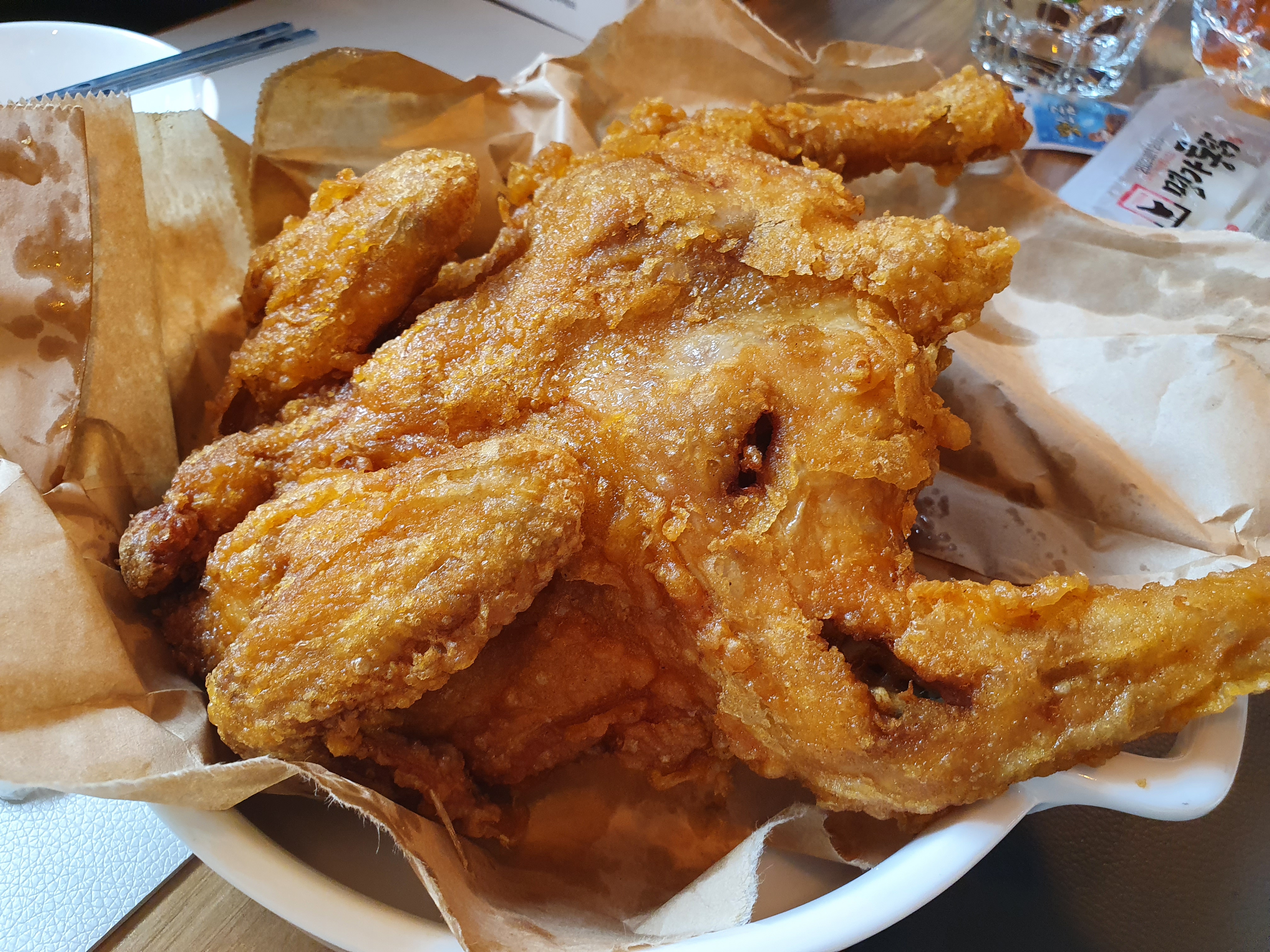 옛날통닭을 통째로 튀겨야 되서