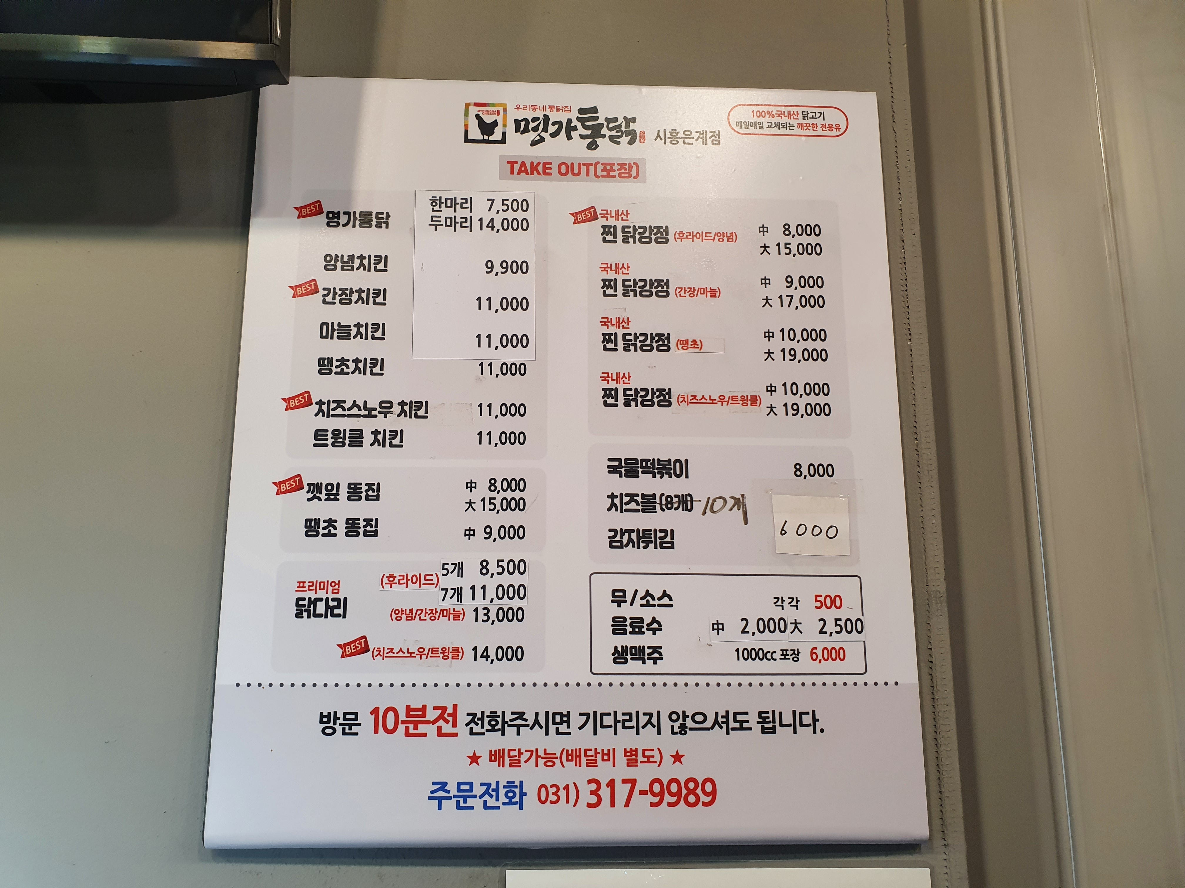 명가통닭을 주문하면
