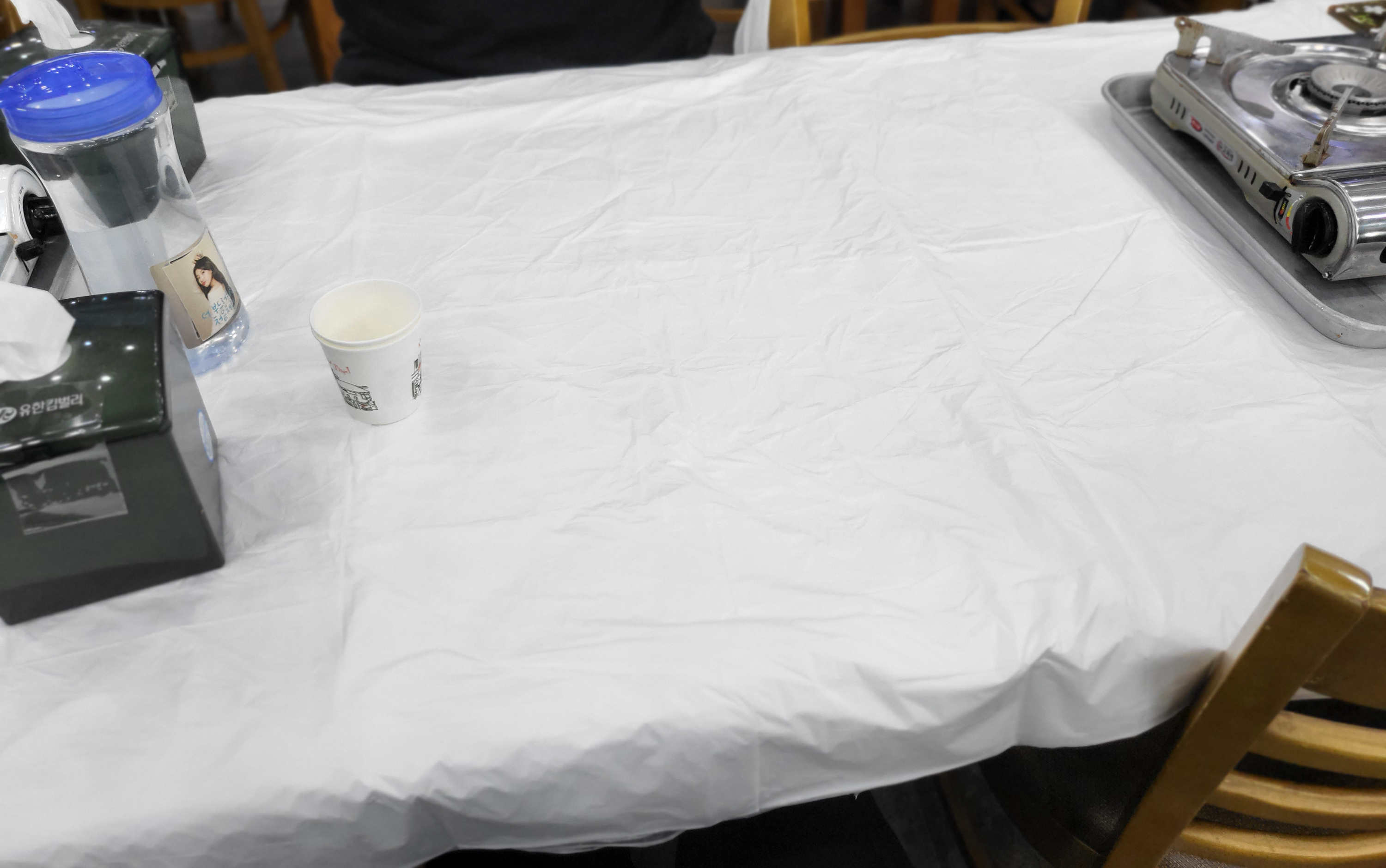그건 테이블마다 흰 비닐이