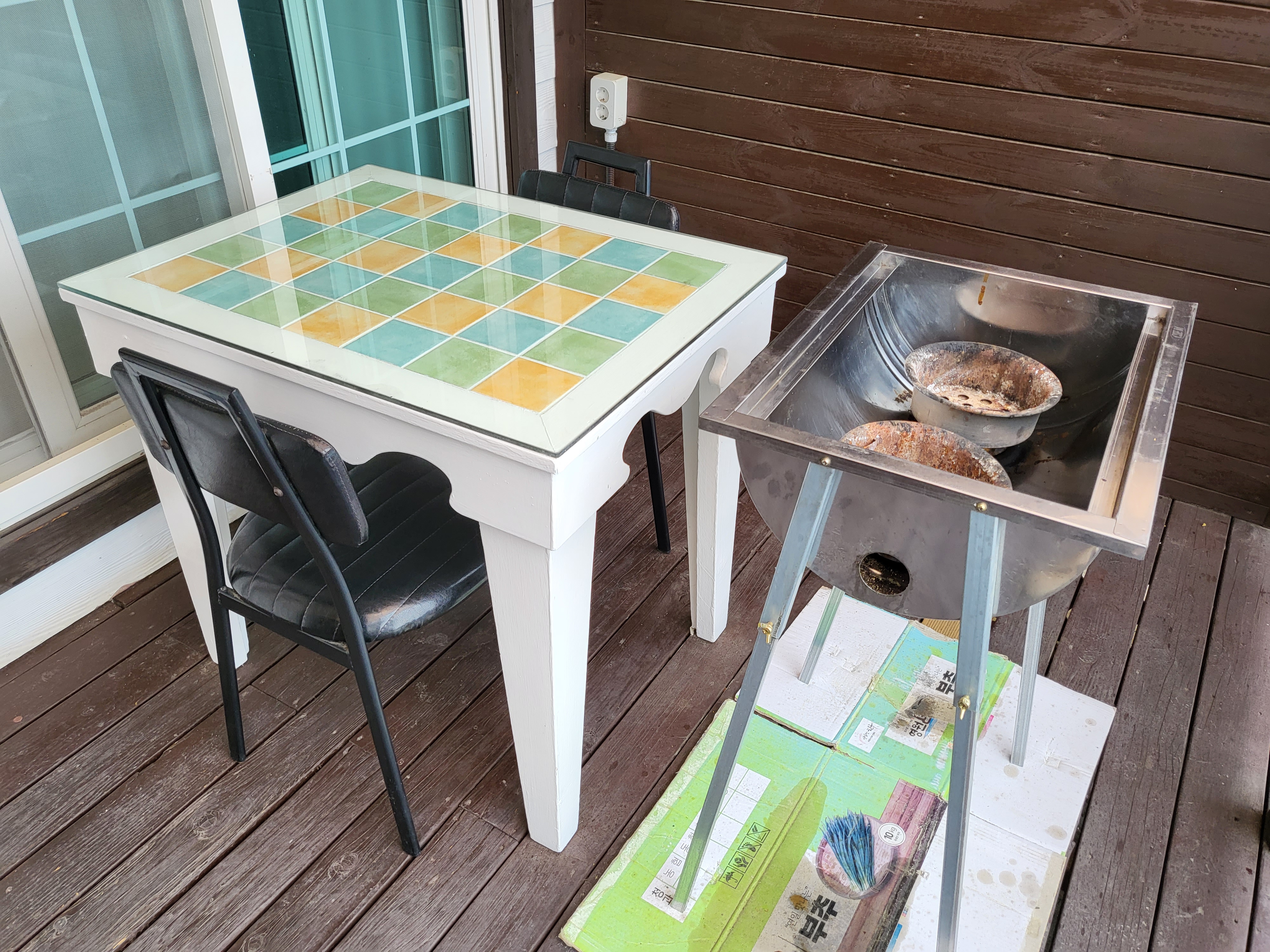숙소앞에 테이블과