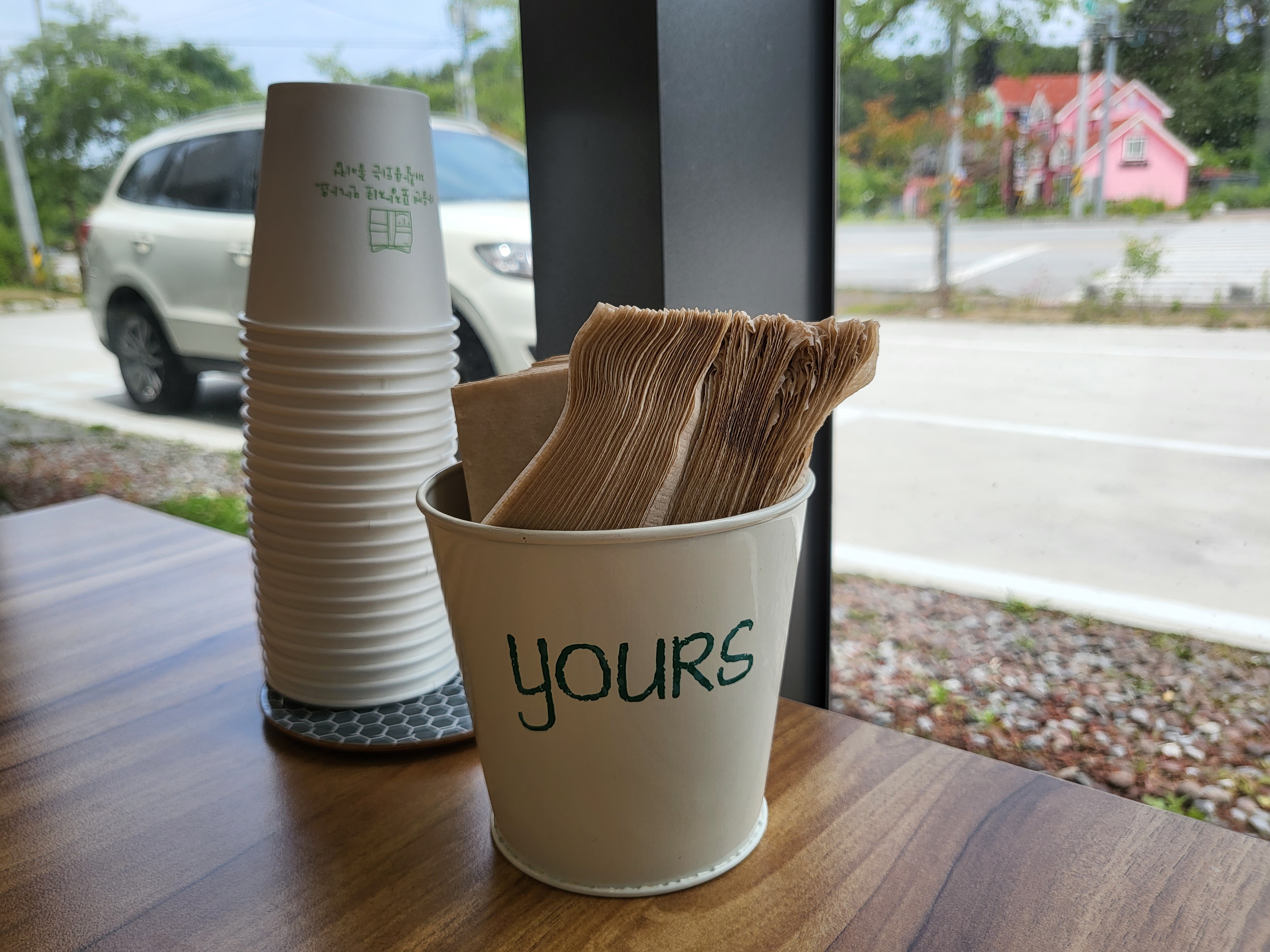 테이블에는 1회용컵과